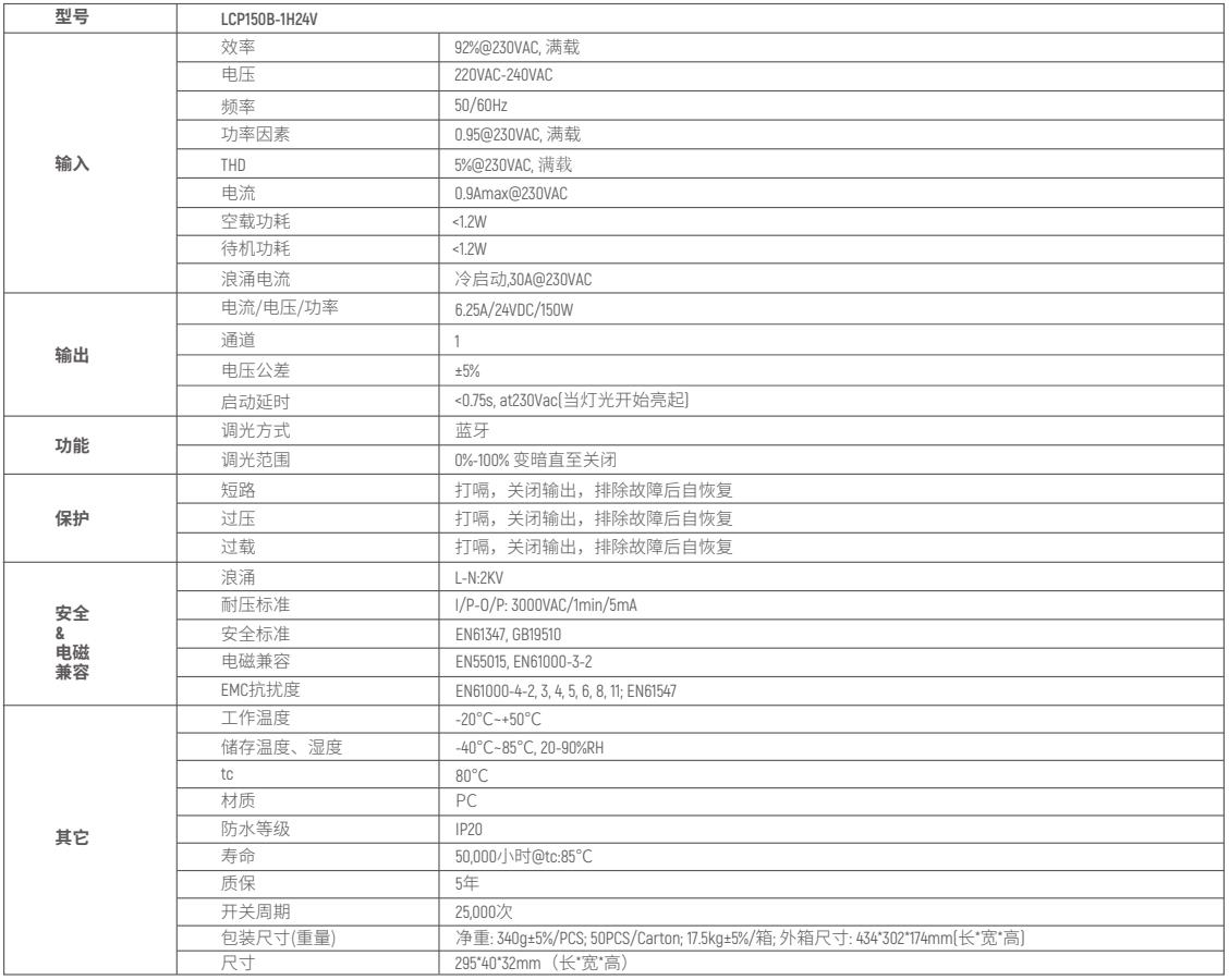 概述LCP150B-1H24V 是一款LED恒壓輸出調(diào)光驅(qū)動(dòng)器,可通過藍(lán)牙控制實(shí)現(xiàn)調(diào)光的效果。