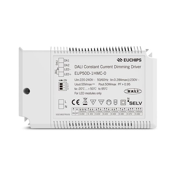 EUP50D-1HMC-0是本公司一款可以提供1050/1100/1150/1200/1250/1300/1350/1400mA,8檔電流的DALI恒流調(diào)光電源。輸出電流可以通過(guò)DIP撥碼開關(guān)簡(jiǎn)易設(shè)置,可以通過(guò)外加DALI主控或Touch DIM開關(guān)實(shí)現(xiàn)平滑的調(diào)光效果。