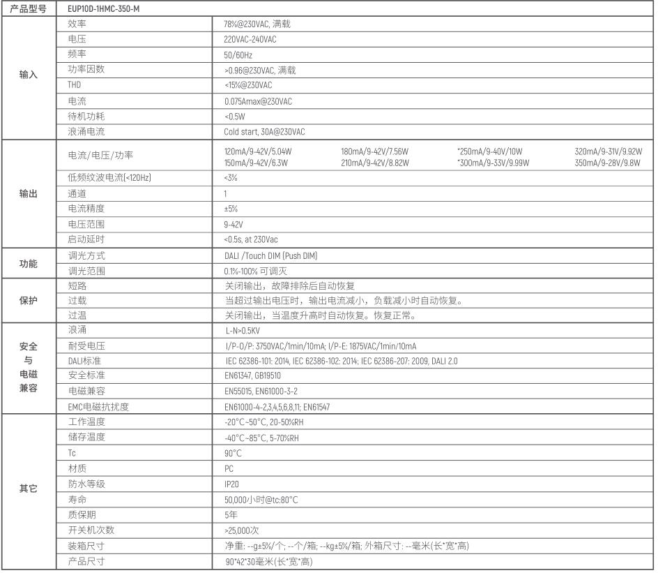 產(chǎn)品型號(hào):EUP10D-1HMC-350-M