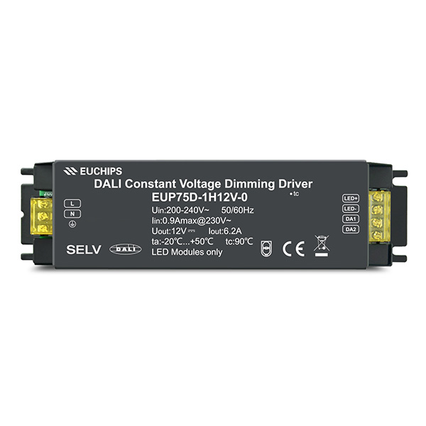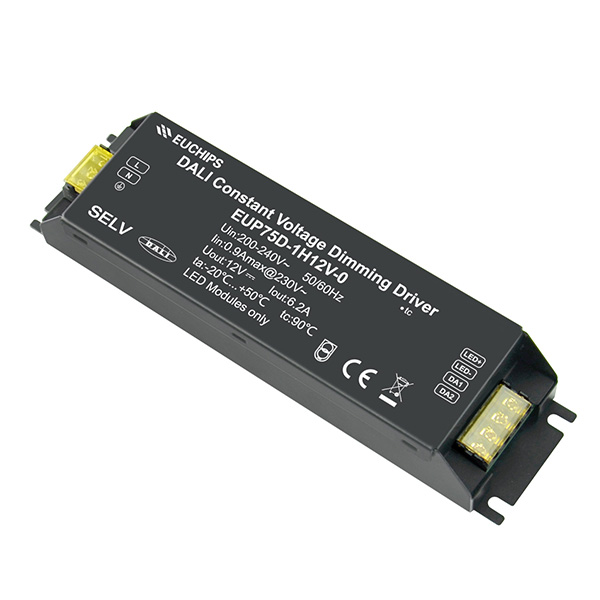 EUP75D-1H12V-0是一款可以用于室內(nèi)的恒壓輸出LED調(diào)光驅(qū)動(dòng)器。符合DALI標(biāo)準(zhǔn)協(xié)議IEC62386。這款驅(qū)動(dòng)器可以通過(guò)連接DALI主控或Touch DIM可以實(shí)現(xiàn)平滑調(diào)光的效果。