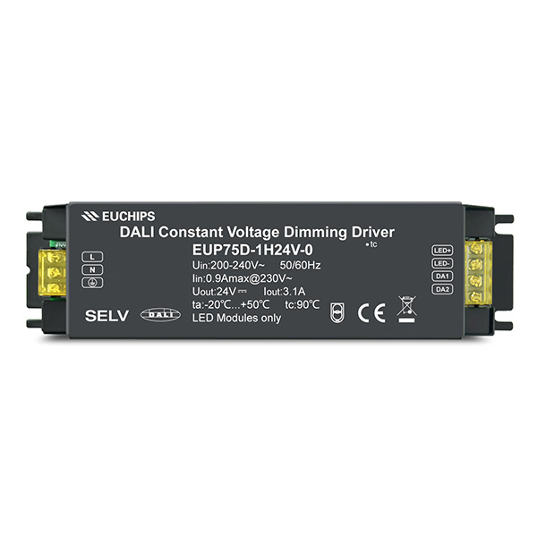 EUP75D-1H24V-0是一款可以用于室內(nèi)的恒壓輸出LED調(diào)光驅(qū)動(dòng)器。符合DALI標(biāo)準(zhǔn)協(xié)議IEC62386。這款驅(qū)動(dòng)器可以通過連接DALI主控或Touch DIM可以實(shí)現(xiàn)平滑調(diào)光的效果。