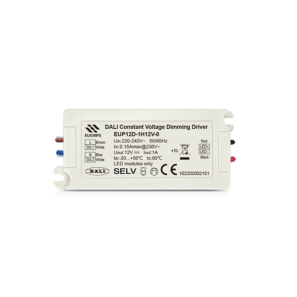 EUP12D-1H12V-0是一款可以用于室內(nèi)的恒壓輸出 LED調(diào)光驅(qū)動器。符合DALI標準協(xié)議IEC62386。這款驅(qū)動器可以通過連接DALI主控或TouchDIM可以實現(xiàn)平滑的調(diào)光效果。