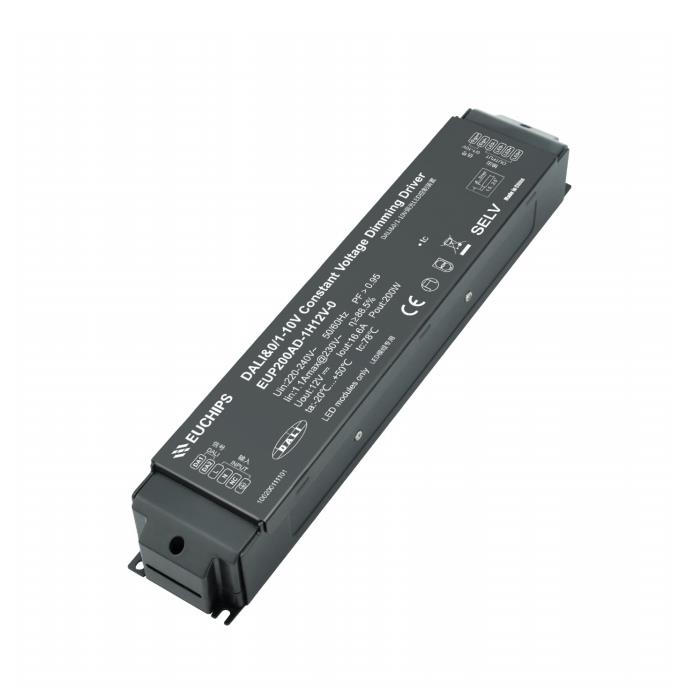 EUP200AD-1H12V-0是一款200W 12V DALI恒壓調(diào)光電源,五合一調(diào)光電源。這款調(diào)光電源符合DALI 國際標準協(xié)議IEC62386,支持DALI,1-10V有源信號,可調(diào)電阻,PWM, Touch DIM多種調(diào)光方式。