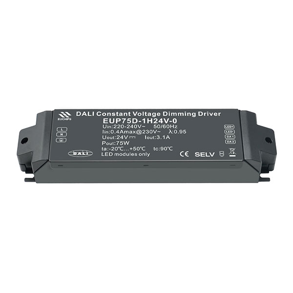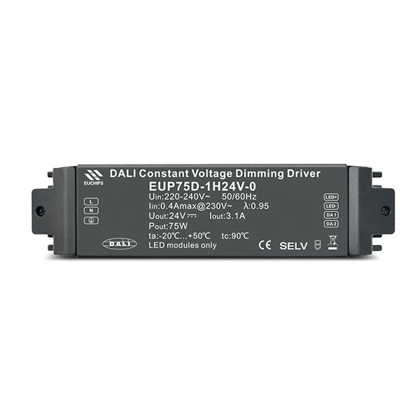 EUP75D-1H24V-0是一款可以用于室內(nèi)的恒壓輸出LED調(diào)光驅(qū)動(dòng)器。符合DALI標(biāo)準(zhǔn)協(xié)議IEC62386。這款驅(qū)動(dòng)器可以通過連接DALI主控或Touch DIM可以實(shí)現(xiàn)平滑調(diào)光的效果。