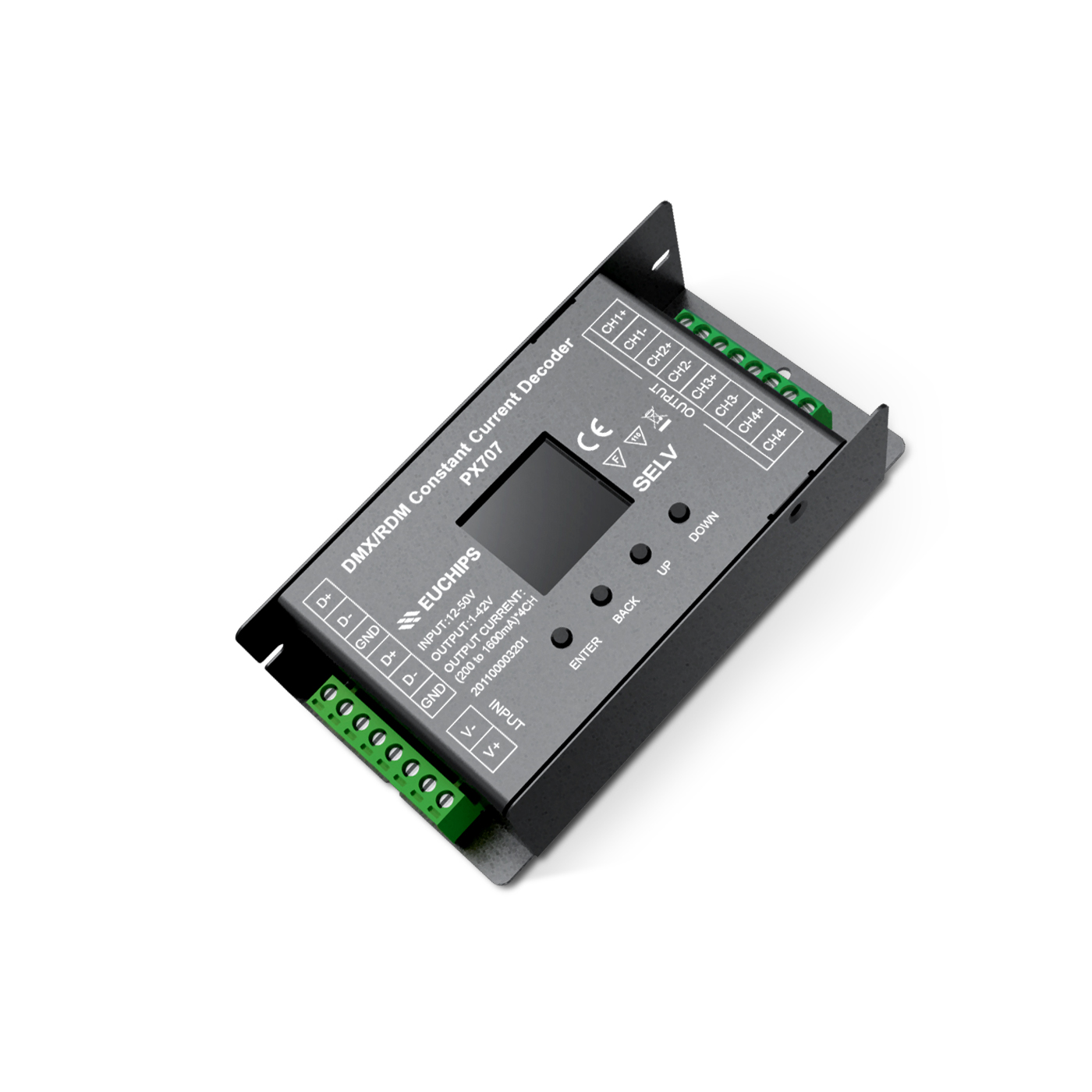 4通道 200-1600mA DMX/RDM恒流解碼器PX707