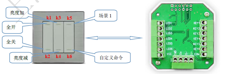 按下“K1”打開(kāi)接入系統(tǒng)的所有燈具