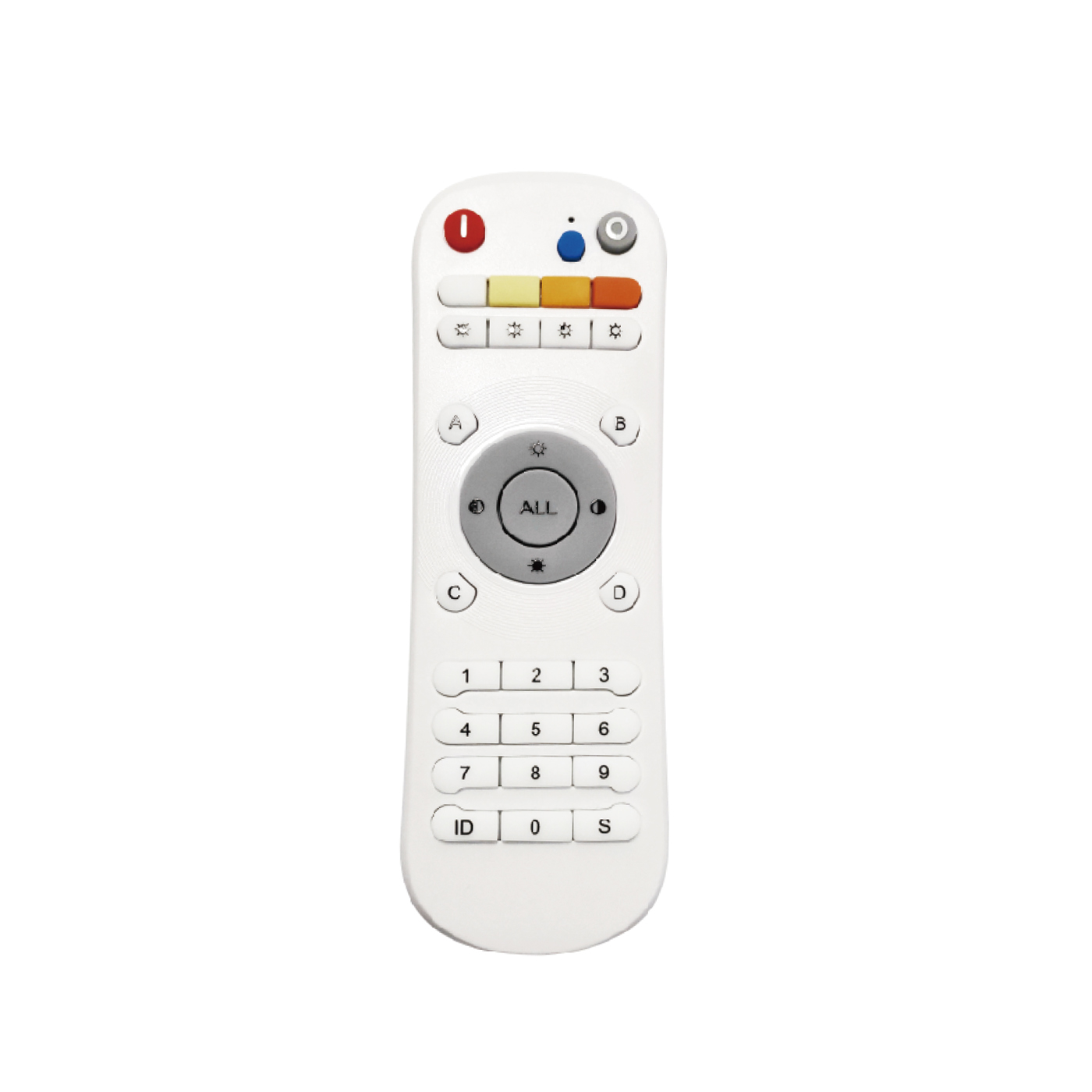 單控總控、開關(guān)、調(diào)亮度、調(diào)色溫、四場景、循環(huán)演示、RGB 色彩調(diào)節(jié)、四色彩模式、遙控器復(fù)制、遙控器身份設(shè)置。遙控距離≤30m