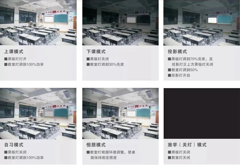 按需照明滿(mǎn)足授課、投影、自習(xí)、午休等多種場(chǎng)景3. 不同時(shí)間段內(nèi)調(diào)光可根據(jù)學(xué)校作息時(shí)間設(shè)置燈光亮度,按作息時(shí)間表順序運(yùn)行。