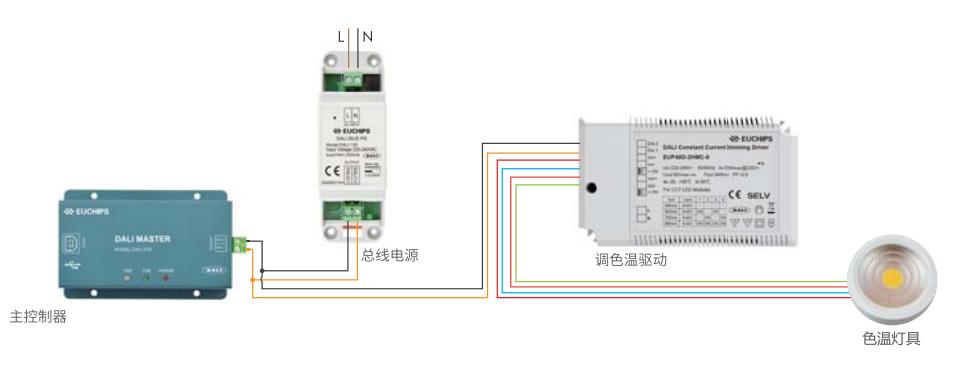 優(yōu)點:DT8調(diào)色溫燈具,只需要一個DALI地址就可以調(diào)亮度和調(diào)色溫。節(jié)省了地址和布線,從而減少了成本和復(fù)雜性。
