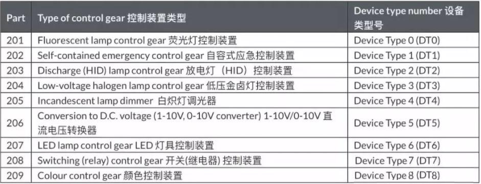 在DALI 標準發(fā)展的早期, 控制裝置的類型主要是按照燈具光源類型和裝置的用途來劃分的。