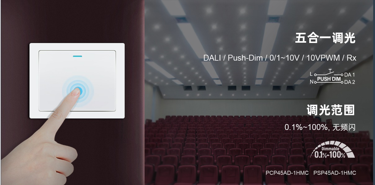兩款新品電源都支持五合一調(diào)光:DALI、PWM、0/1-10V/Push-Dim、Rx。調(diào)光范圍0.1%-100%,無頻閃,讓用戶擁有更多的選擇。