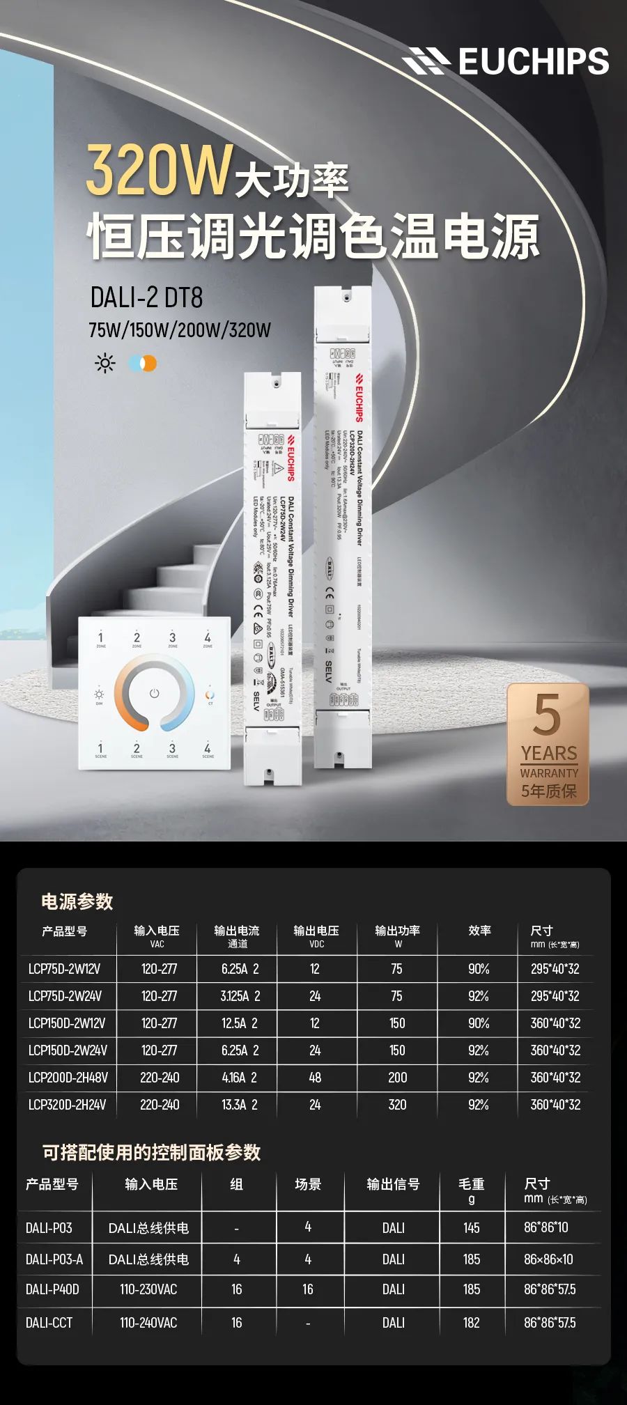 大功率DALI-2 DT8恒壓調(diào)光調(diào)色溫電源