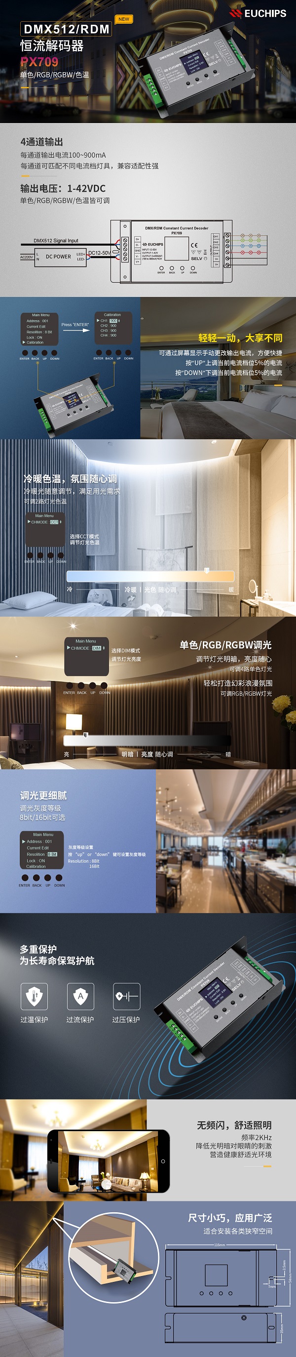 歐切斯新品DMX512解碼器來了,單色,RGB,RGBW色溫皆可調(diào)!