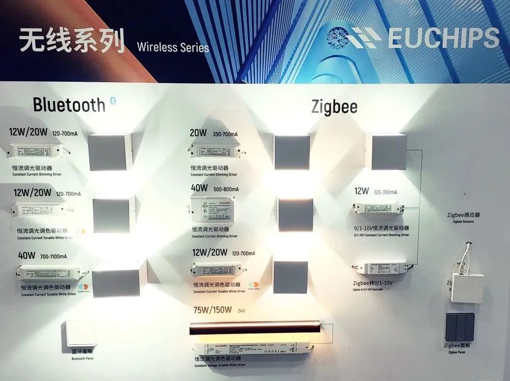歐切斯本次展廳設(shè)計(jì)特別注重觀眾體驗(yàn),攜最新產(chǎn)品、新技術(shù)以及智能調(diào)光整體解決方案重磅亮相。比如經(jīng)典的國標(biāo)調(diào)光和控制系統(tǒng)的產(chǎn)品,主要針對市場上主流的LED燈具,如筒射燈、燈帶、線性燈、面板燈、磁吸燈等照明產(chǎn)品,從調(diào)光信號(hào)(DALI、DMX、0/1-10V和可控硅)、恒壓恒流、調(diào)色溫、藍(lán)牙、Zigbee、非調(diào)光等維度不同輸出功率的產(chǎn)品,能完美解決實(shí)際應(yīng)用過程中的啟亮點(diǎn)高,低端閃爍,調(diào)光范圍窄等不兼容的問題。