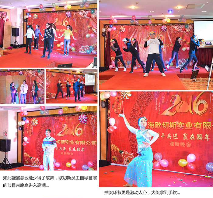 在中國農(nóng)歷申侯年的鐘聲即將敲響之際,我公司舉行了一年一度的新年年會,歐切斯人歡聚一堂,享受這個大家庭帶來的溫暖。在這辭舊迎新之際,小編給大家拜個早年,祝愿大家在新的一年里,身體健康,萬事如意.祝愿歐切斯和廣大合作伙伴事業(yè)興旺發(fā)達(dá)!紅紅火火!