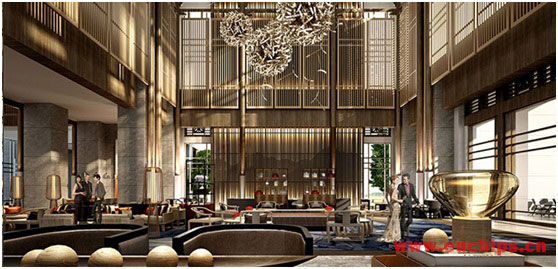 酒店將燈具和暗槽,吊頂燈建筑結(jié)構(gòu)無縫融合,使燈光形成反射和漫反射的效果,光照更加均勻,符合人體視覺特性。