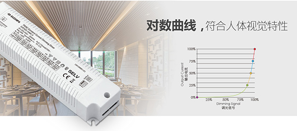 對(duì)數(shù)曲線調(diào)光,符合人體視覺(jué)特性,在調(diào)光過(guò)程中,燈光過(guò)度更自然,更加舒適,用戶的體驗(yàn)性更佳。當(dāng)然如果對(duì)調(diào)光曲線有其它方面的需求,歐切斯的可控硅調(diào)光電源支持定制曲線。