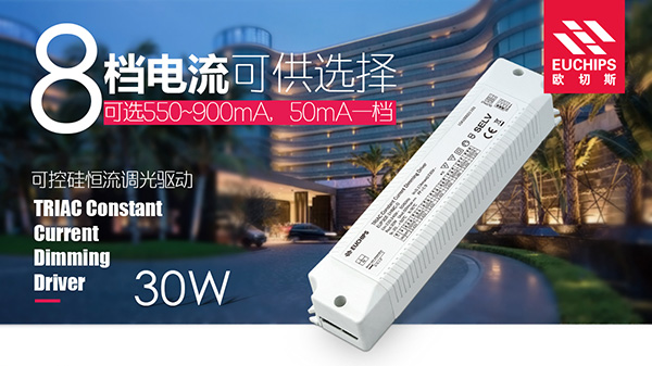 來(lái)源: 2017-07-24【摘要】歐切斯EUCHIPS近期更新了1款可控硅調(diào)光電源產(chǎn)品,這款產(chǎn)品提供550/600/650/700/750/800/850/900mA,8檔輸出電流可選。符合CCC和CE認(rèn)證,可兼容市場(chǎng)主流品牌旋鈕和主控,產(chǎn)品具備5大特點(diǎn),下面一一為大家介紹。