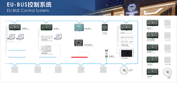 EU-BUS由工業(yè)總線RS485演變而來(lái),總線為主從式構(gòu)架。主機(jī)為主設(shè)備,其它模塊為從設(shè)備。設(shè)備與設(shè)備之間供電及通訊采用手拉手方式連接。通訊距離可達(dá)1.2Km。主機(jī)具有編程功能,軟件內(nèi)置豐富的邏輯模塊,通過邏輯模塊的組合使用,能滿足各種應(yīng)用場(chǎng)合的使用,只需改動(dòng)邏輯模塊及增加各種總線模塊。所有從模塊都可通過主機(jī)設(shè)置參數(shù),編程,接入EU-BUS總線,用戶通過安卓、蘋果APP,簡(jiǎn)單的按鍵操作就可以實(shí)現(xiàn)復(fù)雜的場(chǎng)景。