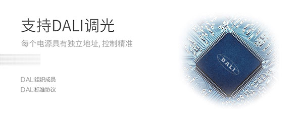 支持DALI數(shù)字調(diào)光,每個電源具有獨立的地址,控制更加靈活,便于安裝操作和維護,調(diào)光更加精確。