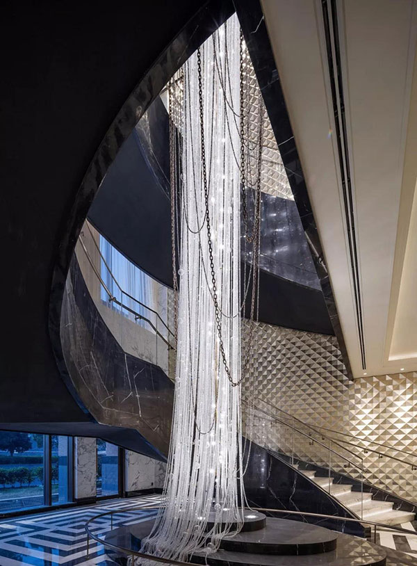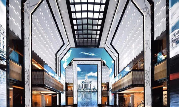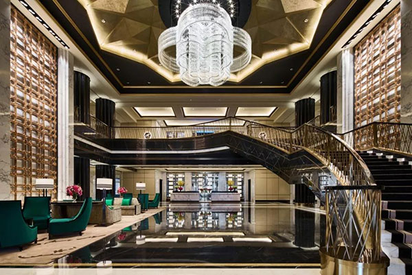 四層挑高的中庭是上海蘇寧寶麗嘉酒店的亮點(diǎn),黑白色調(diào)的大堂帶來強(qiáng)烈的視覺沖擊,頭頂上方是珍貴捷克水晶制成的枝形吊燈巨型LED環(huán)繞大屏配有智能調(diào)光系統(tǒng),可根據(jù)不同場景需求,設(shè)置不同模式。帶來具有沖擊力的視覺體驗(yàn)。