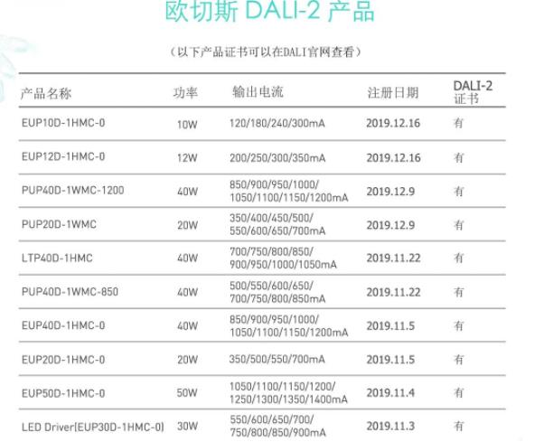 下面來看下10款DALI-2產(chǎn)品。歐切斯DALI-2恒流調(diào)光電源產(chǎn)品,產(chǎn)品功率在10-50W之間,所有DALI-2證書均可在DALI官網(wǎng)產(chǎn)看。