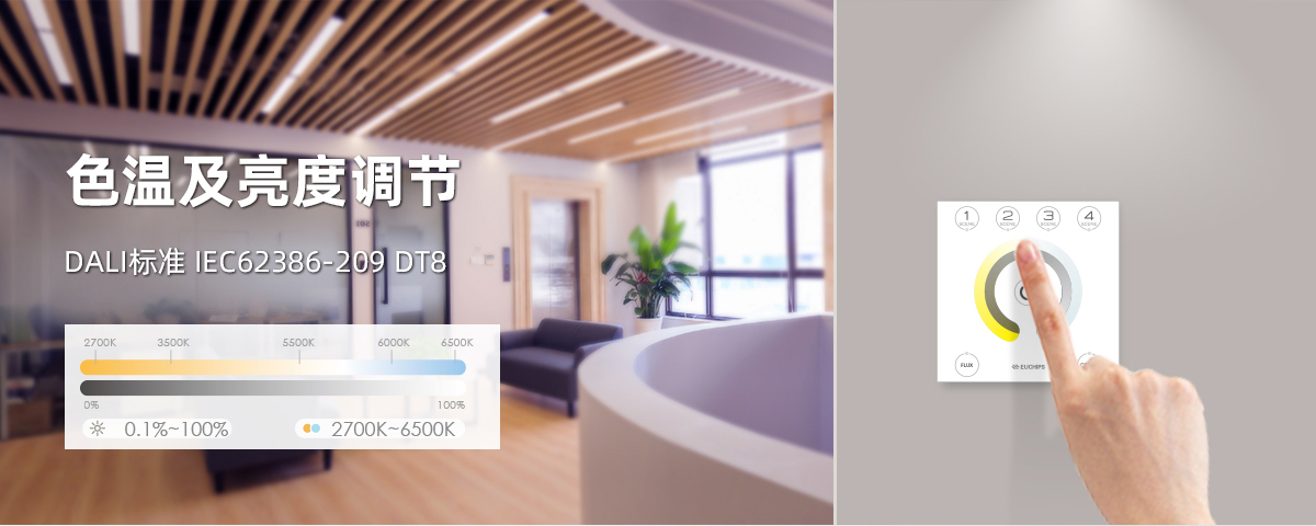 隨著燈光應(yīng)用的深入人心,越來(lái)越多的人不止局限于好的燈光效果,還要帶上各種智能控制和變化。而控制變化中,調(diào)光調(diào)色溫又是比較常用的!歐切斯DALI智能調(diào)光調(diào)色溫系列,讓燈光隨心所調(diào)!