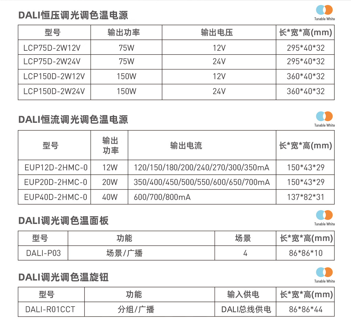 備注:DALI-2調(diào)光調(diào)色溫電源:LCP75D-2W24V、EUP12D-2HMC-0、EUP40D-2HMC-0,可在DALI官網(wǎng)上查詢(xún)。