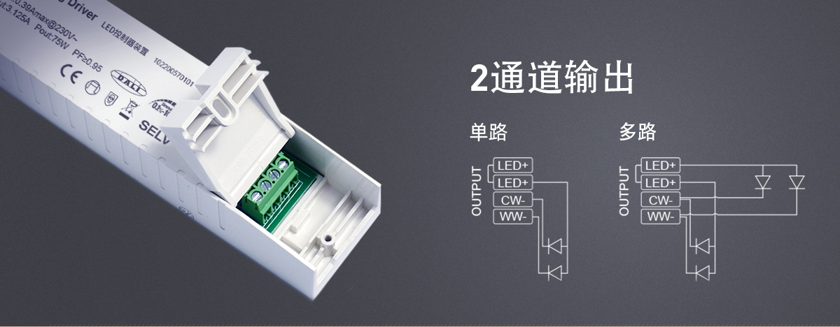 歐切斯DALI調(diào)光調(diào)色溫電源均為2通道恒壓/恒流輸出,支持單路和多路帶載,輕松調(diào)節(jié)燈具亮度和色溫。