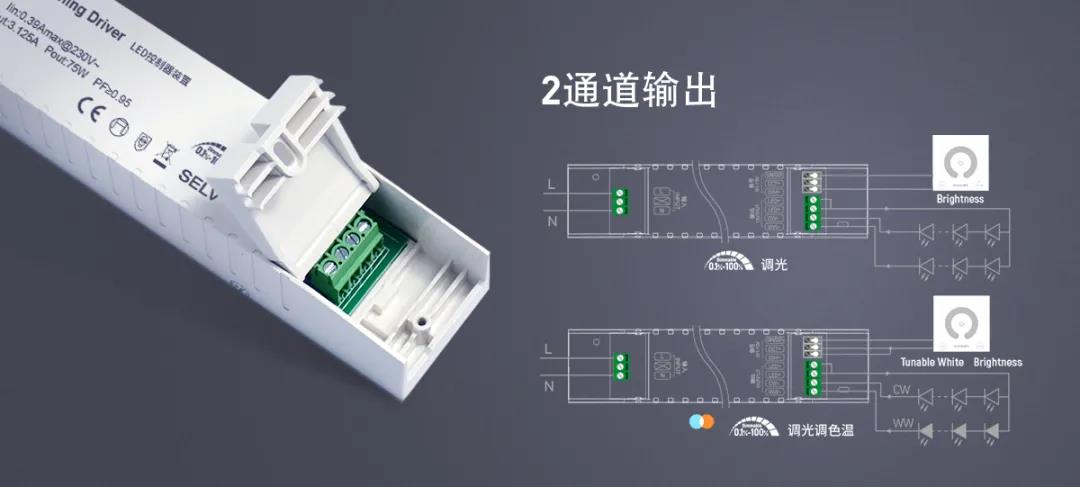 歐切斯0/1-10V調(diào)光調(diào)色溫電源均為2通道恒壓/恒流輸出,支持單路和多路帶載,調(diào)節(jié)燈具亮度和色溫,輕松應(yīng)對各種場景,智造智能燈光效果。