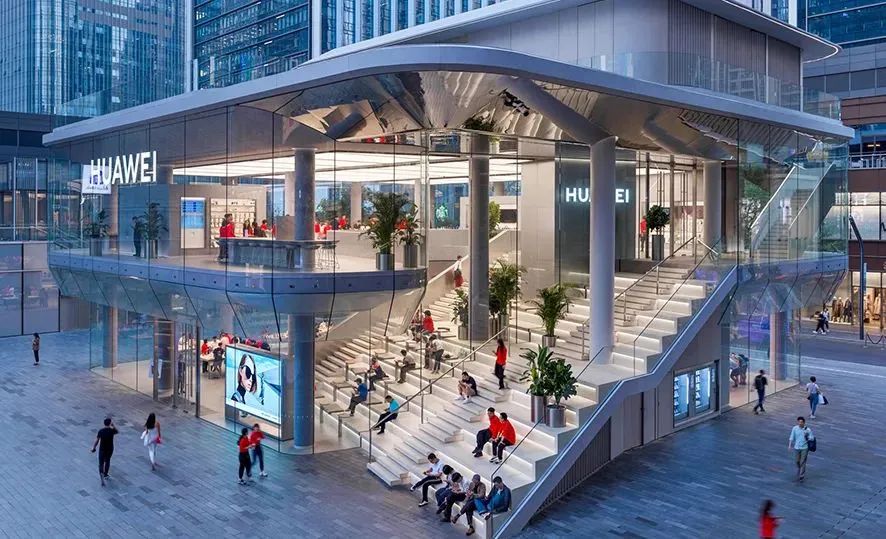 華為在全球的首家直營店,總占地面積1300平米,顧客在現(xiàn)場可以零距離探索華為最新、最全的產(chǎn)品、體驗最快速的5G連接。采用歐切斯DALI調(diào)光系統(tǒng),配合階梯的隱藏燈帶和天花軟膜燈具實現(xiàn)整體、分組調(diào)光、尋址調(diào)光,多種情景模式的調(diào)光功能,還與第三方華為的智能環(huán)控系統(tǒng)聯(lián)動,門店的亮度、溫度和濕度都能根據(jù)室外環(huán)境、人流變化進行自動調(diào)節(jié),讓室內(nèi)始終維持人體最舒適的環(huán)境。
