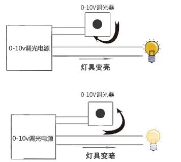 當(dāng)0-10V調(diào)光器調(diào)到最大10V時,燈具滿亮度輸出。當(dāng)0-10V調(diào)光器調(diào)制到0時,關(guān)閉燈具輸出。