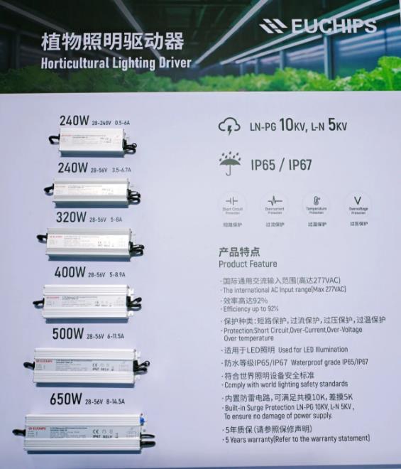 在植物照明領(lǐng)域,歐切斯精準(zhǔn)洞察市場需求,展出240W~650W IP65 IP67防水電源,為室內(nèi)植物、垂直農(nóng)場等現(xiàn)代種植場景提供專業(yè)的光照解決方案!