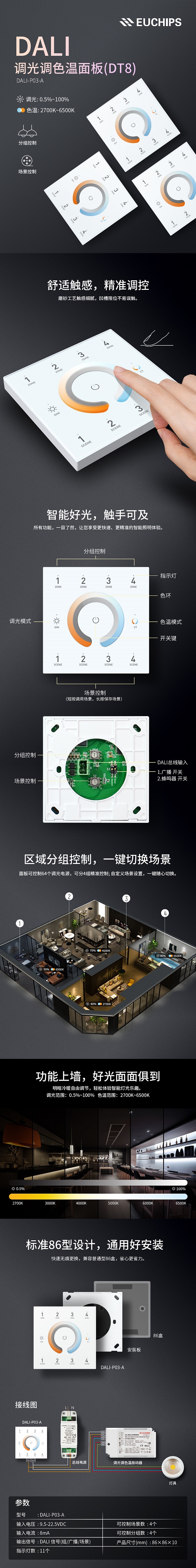 歐切斯DALI DT8調(diào)光調(diào)色溫面板,智能好光觸手可及!