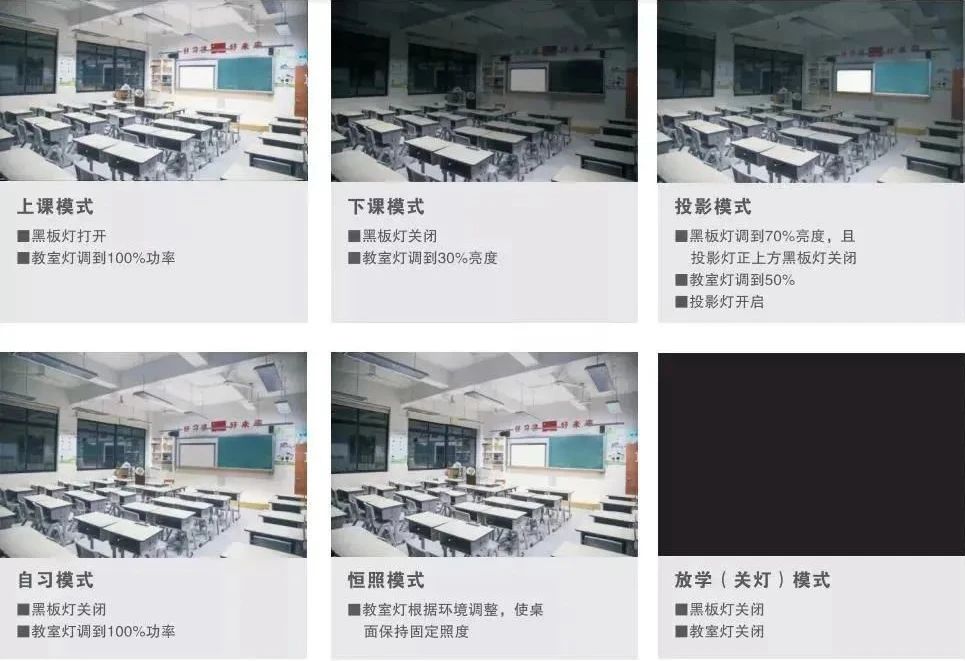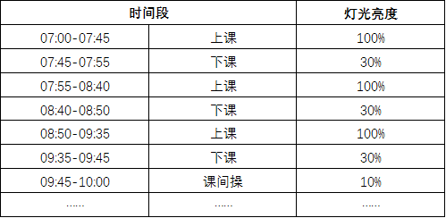 可根據(jù)學(xué)校作息時(shí)間設(shè)置燈光亮度,按作息時(shí)間表順序運(yùn)行。