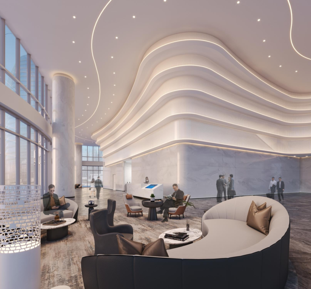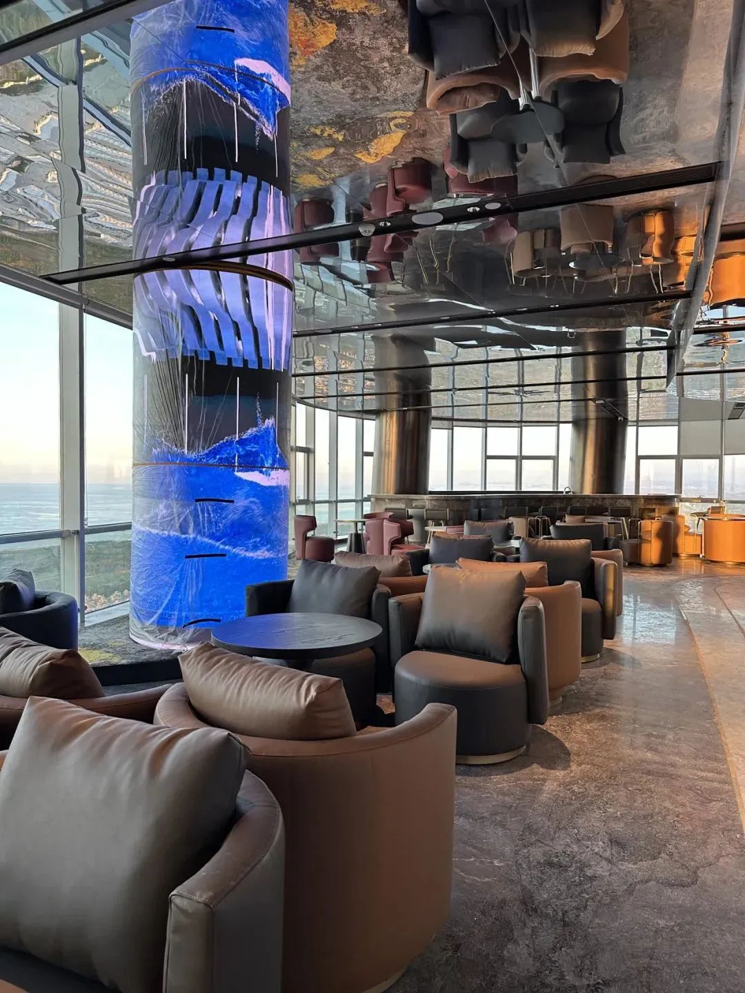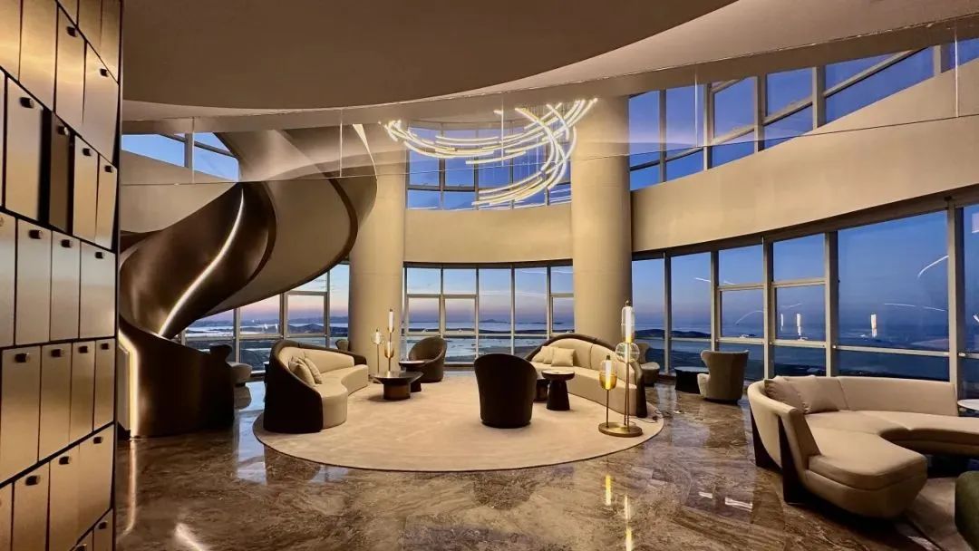 步入位于42層的酒店空中大堂,賓客們仿佛進(jìn)入了一個(gè)流動(dòng)的海森世界。這里的設(shè)計(jì)充滿(mǎn)了度假氛圍,每一處細(xì)節(jié)都透露著輕松與愉悅。大堂中創(chuàng)意采用的“金屬風(fēng)動(dòng)墻”,在歐切斯可控硅智能調(diào)光系統(tǒng)的映襯下,更是顯得波光粼粼、如夢(mèng)如幻,讓賓客們?cè)谑孢m的光環(huán)境中享受美好的時(shí)光。