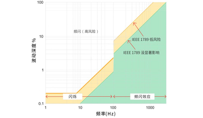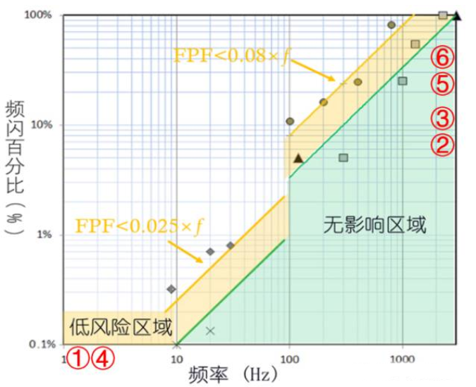 IEEE 在2015年所發(fā)布的文件中,將頻閃風險分為幾個等級,如圖所示: