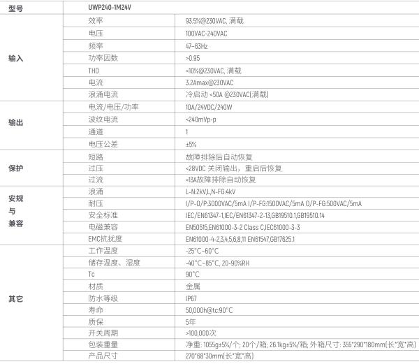 型號(hào):UWP240-1M12V